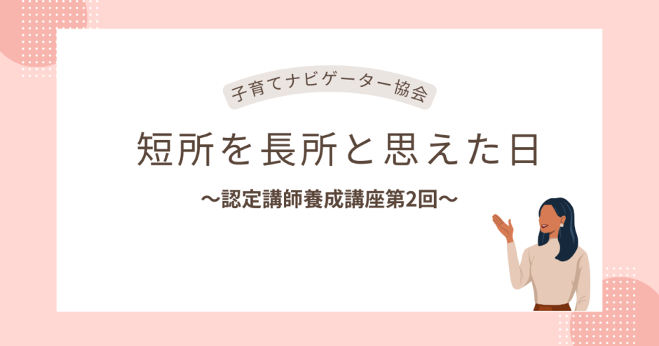 今回は、子育てナビゲーター協会認定講師養成講座第2回目の講座を受講したのでそのことについて学びや感じたことをまとめていきます。