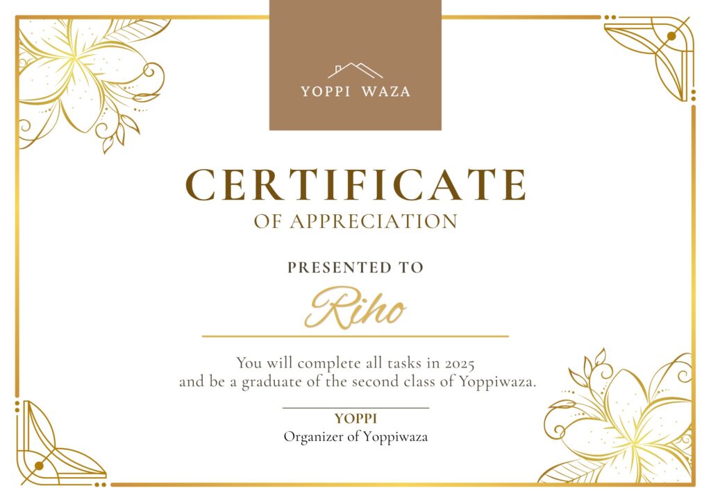 そしてなんと今回、よっぴさんが修了書を作ってくださいました。それがこちらです!!
